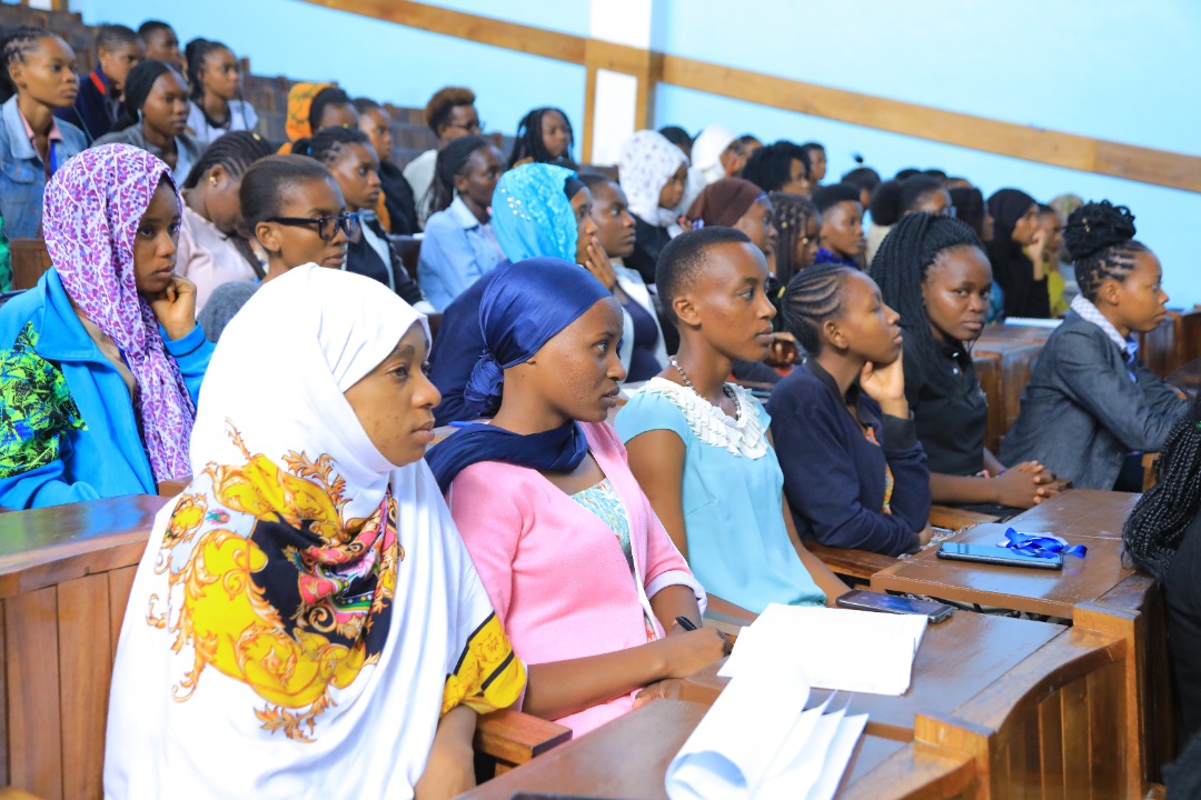 Baadhi ya wanafunzi kutoka Chuo cha Sayansi na Teknolojia (MUST), Jijini Mbeya wakimsikiliza Mhandisi Nancy Mduma (hayupo pichani), kuhusu umuhimu wa kujisajili na Bodi ya Wahandisi (ERB) pindi wanapomaliza vyuo.
