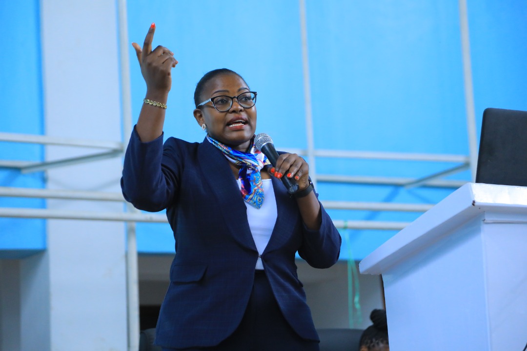 Mhandisi kutoka Bodi ya Usajili Wahandisi (ERB), Mhandisi Nancy Mduma akifafanua jambo kwa Wanafunzi wa Chuo cha Sayansi na Teknolojia-MUST, (hawapo pichani), Jijini Mbeya.
