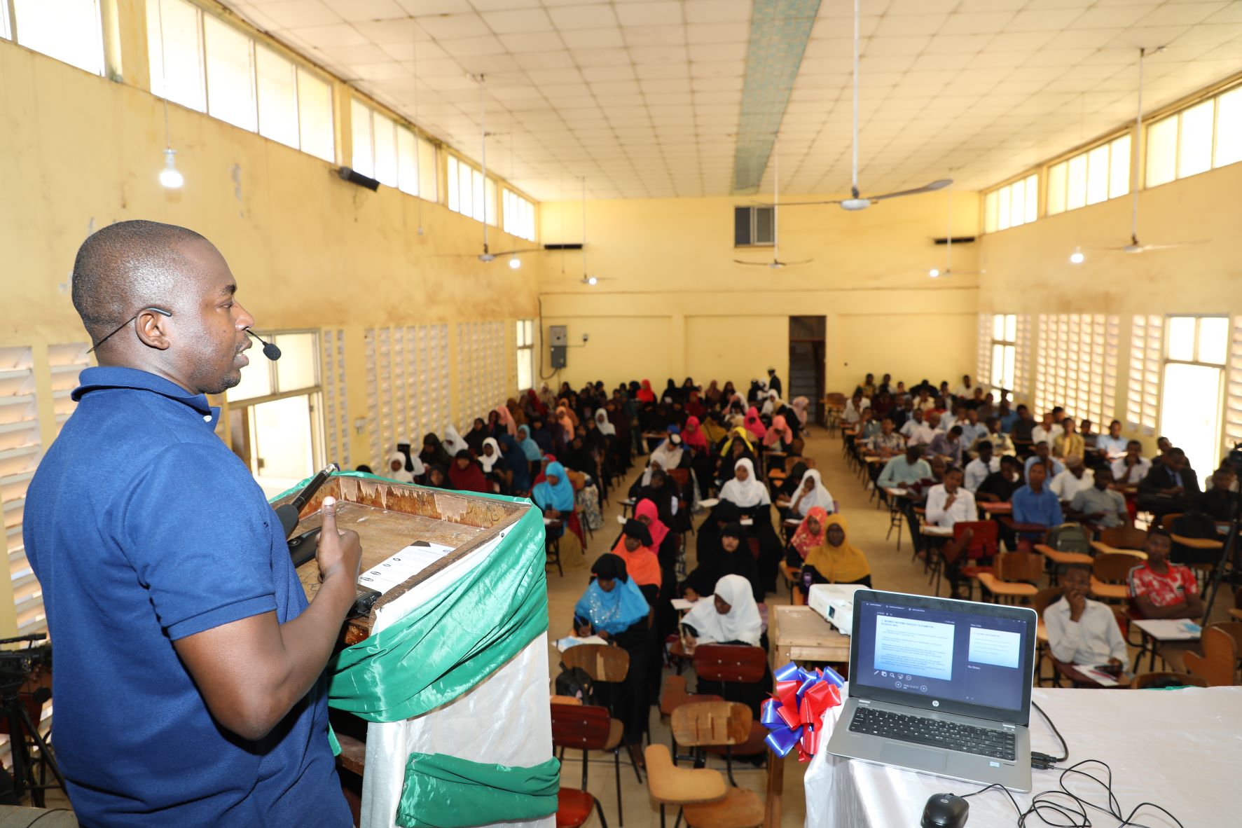 Afisa Usajili kutoka Wakala wa Usajili wa Biashara na Leseni (BRELA), Bw. Yusuph Mwakasyafuka akitoa mafunzo leo kwa wanafunzi wa Chuo Kikuu cha Waislamu Morogoro (MUM) huduma zinazotolewa na taasisi hiyo na jinsi ya kuzipata kwa njia ya mtandao.
