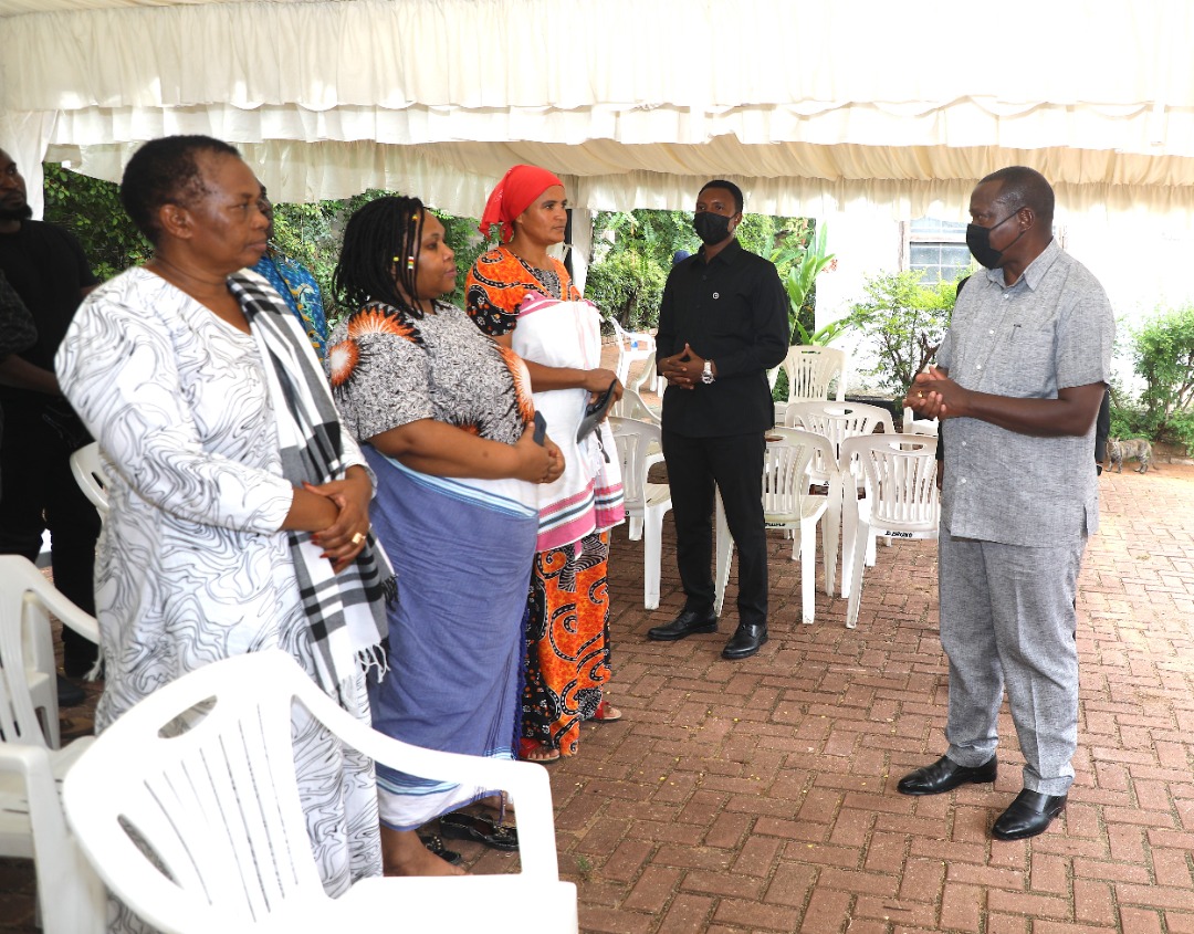 Makamu wa Rais wa Jamhuri ya Muungano wa Tanzania Dkt. Philip Mpango akizungumza na ndugu, jamaa na marafiki mbalimbali waliofika nyumbani kwa marehemu Askofu Mstaafu Gerald Mpango Boko Jijini Dar es salaam. Marehemu Askofu Mstaafu Gerald Mpango ni kaka wa Makamu wa Rais Dkt. Philip Mpango. Januari 20,2022.