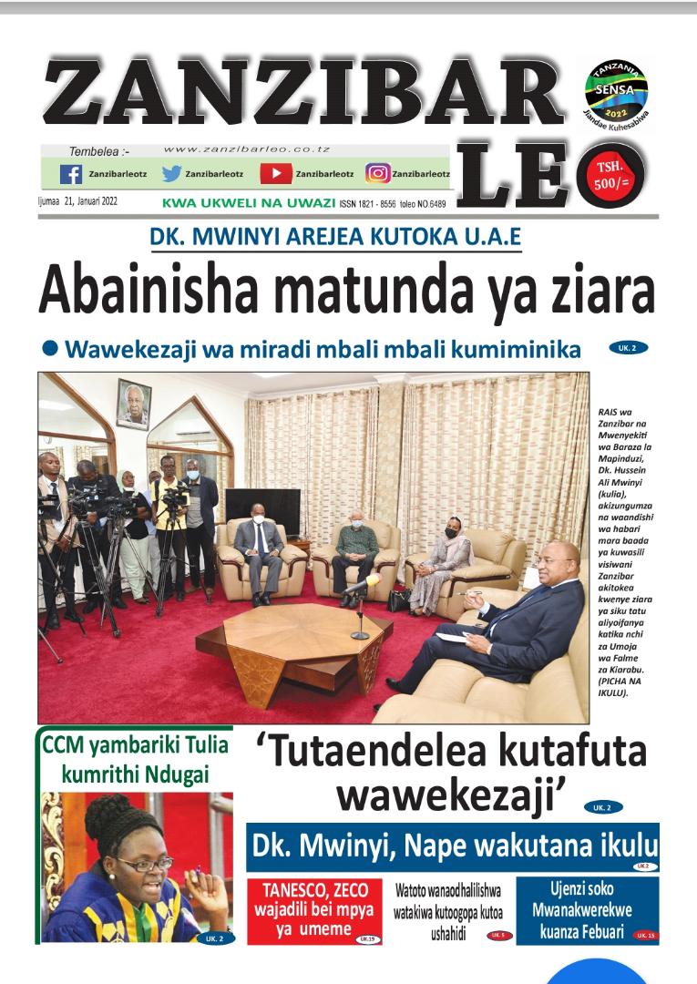 MagazetiPITIA VICHWA VYA HABARI KATIKA MAGAZETI YA LEO JANUARY 21,2022 Last updated: 2022/01/20 at 9:50 PM Alex Sonna 4 years ago Share SHARE Alex Sonna January 20, 2022 January 20, 2022 Share this Article Facebook Twitter Email Print Previous Article TAKUKURU DODOMA YARIDHISHWA NA UJENZI WA MADARASA YA UVIKO-19 NA MIRADI MBALIMBALI Next Article TANESCO MANYARA YATOA UFAFANUZI KWA WANANCHI BEI MPYA ZA UMEME