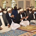 Makamu wa Rais wa Jamhuri ya Muungano wa Tanzania Dkt. Philip Mpango akitoa heshima za mwisho katika mwili wa kaka yake aliyekuwa Askofu mstaafu wa Kanisa la Anglikana Askofu Gerald Mpango wakati wa ibada ya kuaga mwili huo iliofanyika katika kanisa la Anglikana la Mtakatifu Albano lililopo Posta jijini Dar es salaam