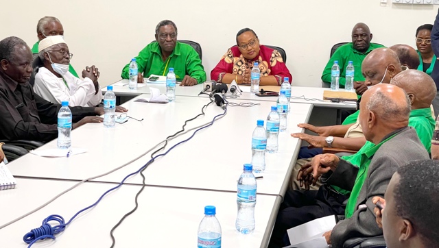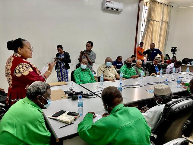 Waziri wa Nchi Ofisi ya Waziri Mkuu Sera,Bunge na Uratibu Dkt.Pindi Chana akiwaskiliza wazee wa Baraza la wazee wa Chama cha Mapinduzi (CCM) Wilaya ya Dodoma Mjini wakati walipofanya ziara ya kutembelea ujenzi wa mji wa Serikali uliopo Mtumba Jijini Dodoma