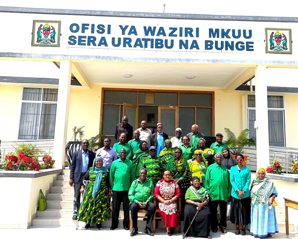 Waziri wa Nchi Ofisi ya Waziri Mkuu Sera,Bunge na Uratibu Dkt.Pindi Chana akiwa katika picha ya pamoja na Baraza la wazee wa Chama cha Mapinduzi (CCM) Wilaya ya Dodoma Mjini wakati walipofanya ziara ya kutembelea ujenzi wa mji wa Serikali uliopo eneo la Mtumba Jijini Dodoma