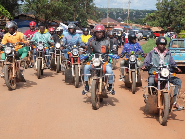 Waendesha Boda boda katika Manispaa ya Songea mkoani Ruvuma wakishiriki matembezi wakati wa Uzinduzi wa wiki ya sheria kanda ya Songea inayoendelea katika viwanja vya Soko Kuu mjini Songea