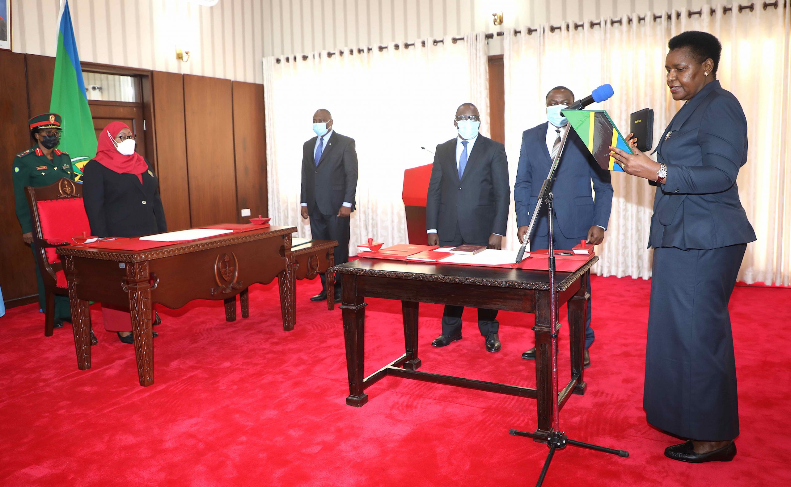 Rais wa Jamhuri ya Muungano wa Tanzania Mhe. Samia Suluhu Hassan leo amemuapisha Mhe. Dkt. Angeline Sylvester Lubala Mabula kuwa Waziri wa Ardhi, Nyumba na Maendeleo ya Makazi, katika hafla iliyofanyika Ikulu Chamwino mkoani Dodoma.