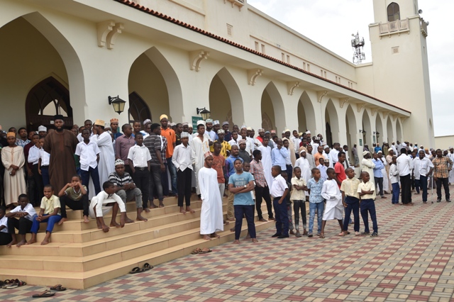 WAUMINI wa Dini ya Kiislam wakiitikia dua ikisomwa na Mufti Mkuu wa Zanzibar Sheikh.Saleh Omar Kabi.(hayupo pichani) baada ya kumalizika kwa Sala ya Ijumaa iliyofanyika katika Masjid Jamiu Zinjibar Mazizini Wilaya ya Magharibi “B” Unguja.(Picha na Ikulu).