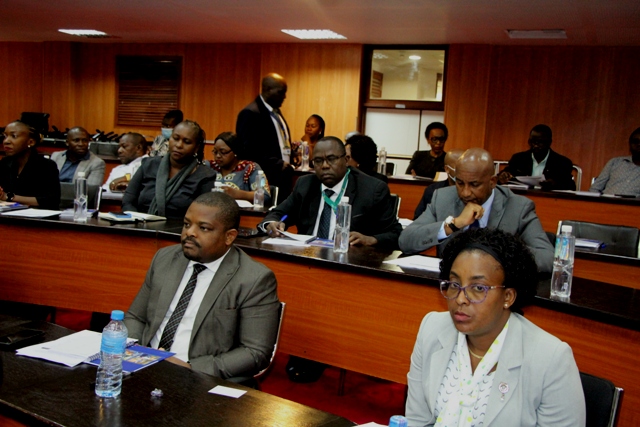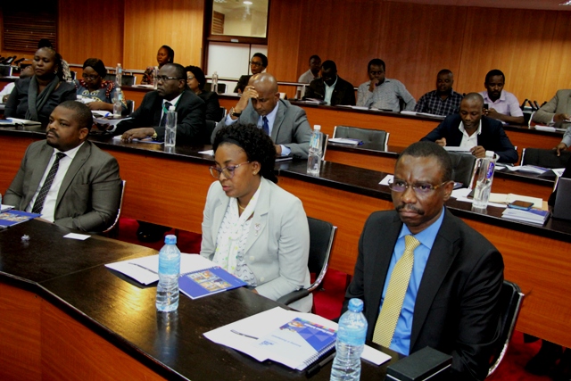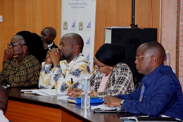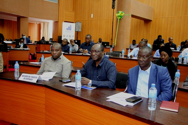 Msemaji Mkuu wa Wizara ya Fedha ba Mipango Bw. Benny Mwaipaja akiwa pamoja na maofisa wengine wa wizara hiyo wakifuatilia uzinduzi huo.