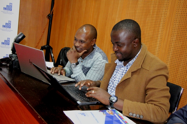 Baadhi ya waandishi wa habari walioshiriki katika uzinduzi huo wakiendelea na kazi yao.