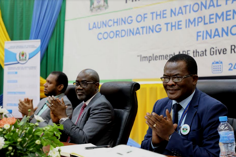 Naibu Katibu Mkuu Wizara ya Fedha na Mipango Bw. Lawrence Mafuru (katikati) akipiga makofi kufurahia jambo wakati wa hafla ya uzinduzi wa Timu ya Kitaifa iliyoundwa kwa ajili ya Kuwezesha Ugharamiaji wa Miradi ya Maendeleo kwa kutumia njia mbadala (Alternative Project Financing – APF National Facilitation Team). kulia kwake ni Naibu Katibu Mkuu Wizara ya Fedha na Mipango Zanzibar Bw. Aboud Hassan Mwinyi na kushoto kwake ni Kamishna wa Idara ya Maendeleo ya Sekta ya Fedha, Wizara ya Fedha na Mipango, Dkt. Charles Mwamaja, Jijini Dodoma