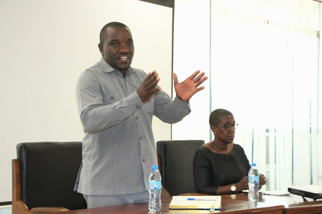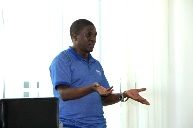 Mdhibiti Ubora kutoka Bohari ya Dawa(MSD) Joseph Kitukulu akiwasilisha mada kuhusu mashine zinazotmika kusafisha figo za wagonjwa.