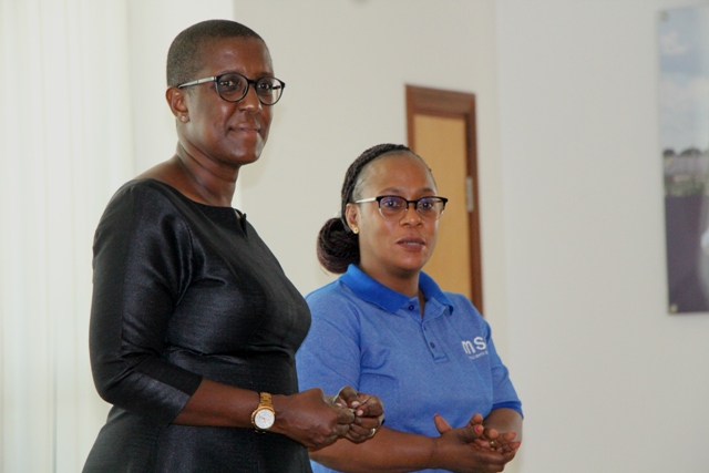 Mkuu wa Kitengo cha Mawasiliano Bohari ya Dawa MSD Bi. Etty Kusiluka kulia akifafanua jambo mara baada ya Mratibu wa Mgonjwa ya Figo, Wizara ya Afya, Dr. Linda Ezekiel akiwasilisha mada katika mafunzo hayo.