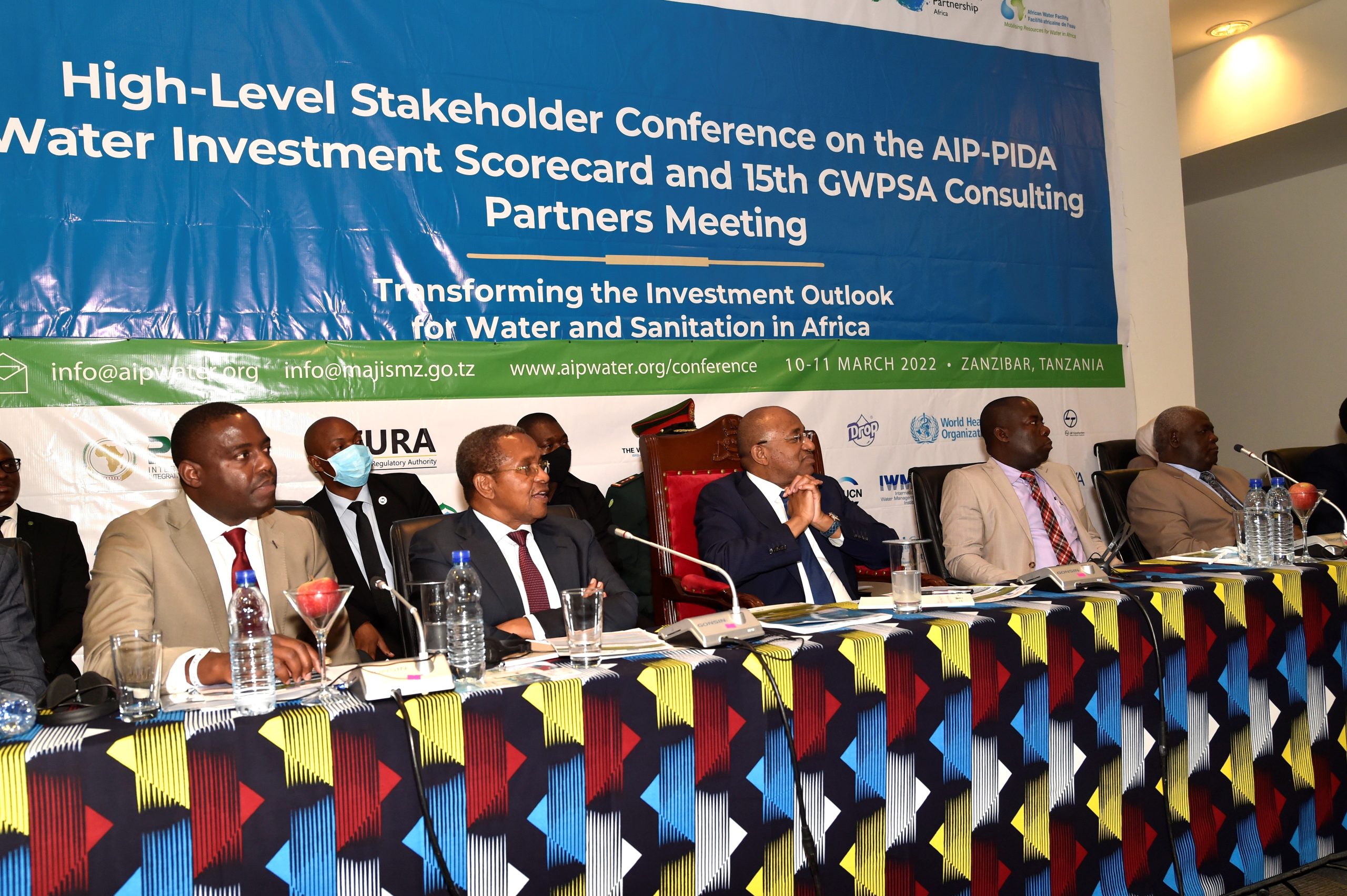 RAIS wa Zanzibar na Mwenyekiti wa Baraza la Mapinduzi Mhe.Dk.Hussein Ali Mwinyi akihutubia na kuufungua Mkutano Mkuu wa Uwekezaji wa Sekta ya Maji Barabi Afrika uliofanyika Zanzibar katika ukumbi wa Hoteli ya Melia Mkoa wa Kaskazini Unguja leo 11-3-2022. Uliowashirikisha wadau mbalimbali. Tanzania na Nje ya Tanzania (Picha na Ikulu).