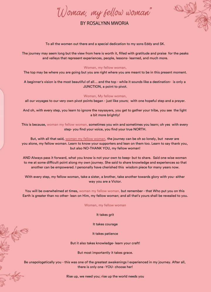 MchanganyikoWOMAN, MY FELLOW WOMAN BY ROSALYNN MWORIA Last updated: 2022/03/11 at 10:12 AM John Bukuku 4 years ago Share SHARE John Bukuku March 11, 2022 March 11, 2022 Share this Article Facebook Twitter Email Print Previous Article WAZIRI NDUMBARO ATETA NA TIMU ZA ATLETICO MADRID, GETAFE NA REAL VALLADOLID KUTANGAZA UTALII WA TANZANIA Next Article SAVVY MEDIA GROUP LTD-SAVVY FM 105.3 ARUSHA YAPOKEA LESENI TOKA TCRA HII LEO