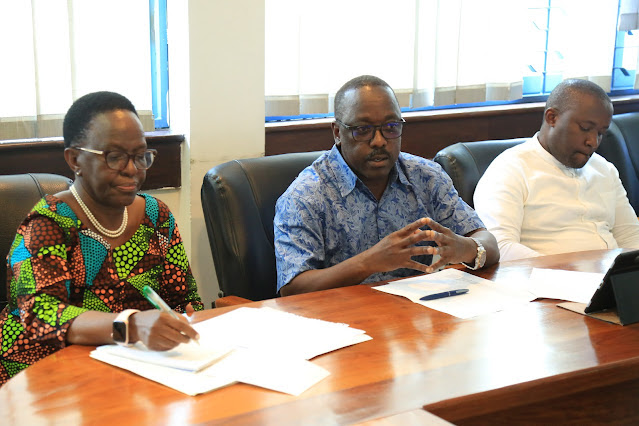 Waziri wa Mambo ya Nje na Ushirikiano wa Afrika Mashariki Mhe. Balozi Liberata Mulamula akimkaribisha Mwenyekiti wa Kamati ya Kudumu ya Bunge ya Mambo ya Nje, Ulinzi na Usalama (NUU) Mhe. Vita Kawawa katika Chuo cha Diplomasia (CFR) Jijini Dar es Salaam