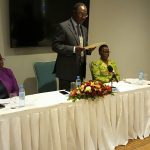 Mdau kutoka sekta ya hoteli akiwasilisha changamoto mbalimbali wanazokumbana nazo wafanya biashara hao katika utekelezaji wa Sheria Na.5 ya Usalama na Afya Mahali pa Kazi ya Mwaka 2003, ambapo changamoto hizo zilitolewa majibu na jopo la viongozi kutoka OSHA.