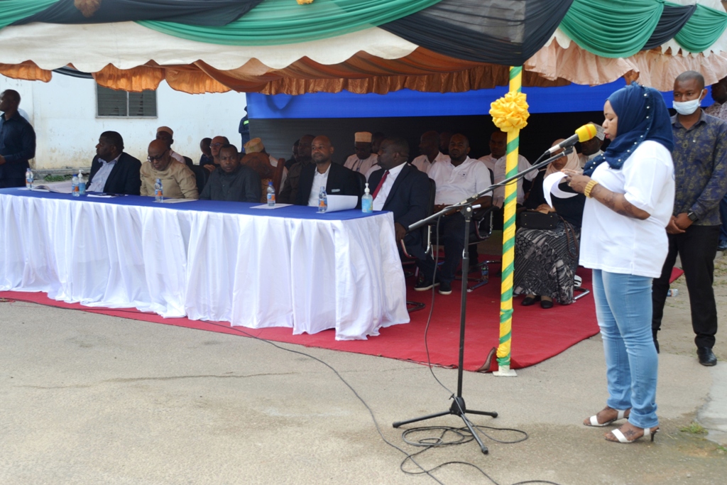 Mfanyakazi kitengo cha Tiba ya mgongo na mishipa ya fahamu (NED) dkt.Mulhat Simba akisoma risala kwa niaba ya kitengo hicho wakati wa uzinduzi wa mafunzo ya tiba ya uvimbe na saratani ya ubongo yaliyofanyika Hospitali ya Rufaa Mnazi mmoja Zanzibar.