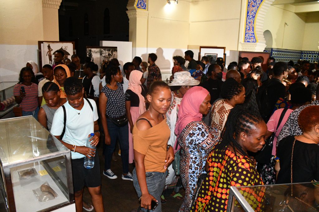 Watu Mbalimbali wakiangalia kazi za Sanaa za ufundi kwenye Maonesho ya Museum Arts Explosion, Makumbusho na Nyumba ya Utamaduni.
