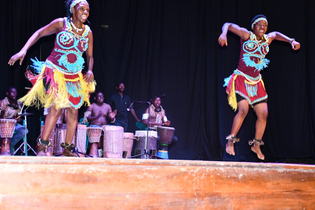 Wasanii wa Salaa za Jukwaani wakionesha umahiri wao katika fani ya Sarakasi na kucheza Ngoma, kwenye Maonesho ya Museum Arts Explosion, Makumbusho na Nyumba ya Utamaduni.