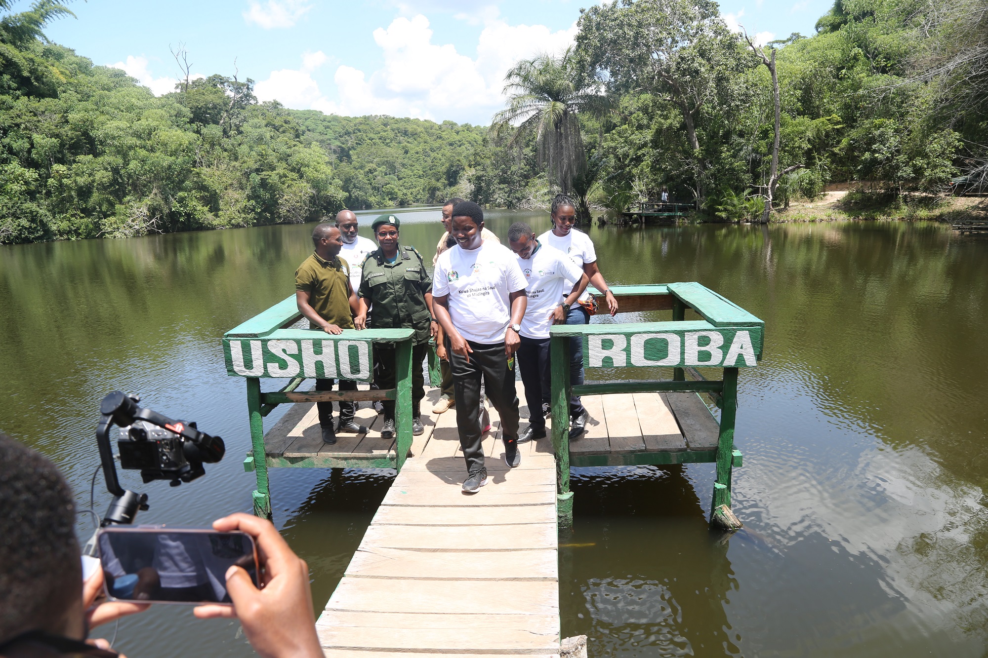 Waziri wa Nchi Ofisi ya Makamu wa Rais (Muungano na Mazingira) Mhe. Dkt Selemani Jafo akifurahia mandhari ya Msitu wa Kazimzumbwi wilayani Kisarawe mkoani Pwani wakati wa Kongamano la Wasaa wa Mazingira lililoandaliwa na Shirika la Kimataifa la Uhifadhi wa Mazingira na Wanyamapori (WWF) kwa ushirikiano na Taasisi ya Vodacom Foundation Tanzania.