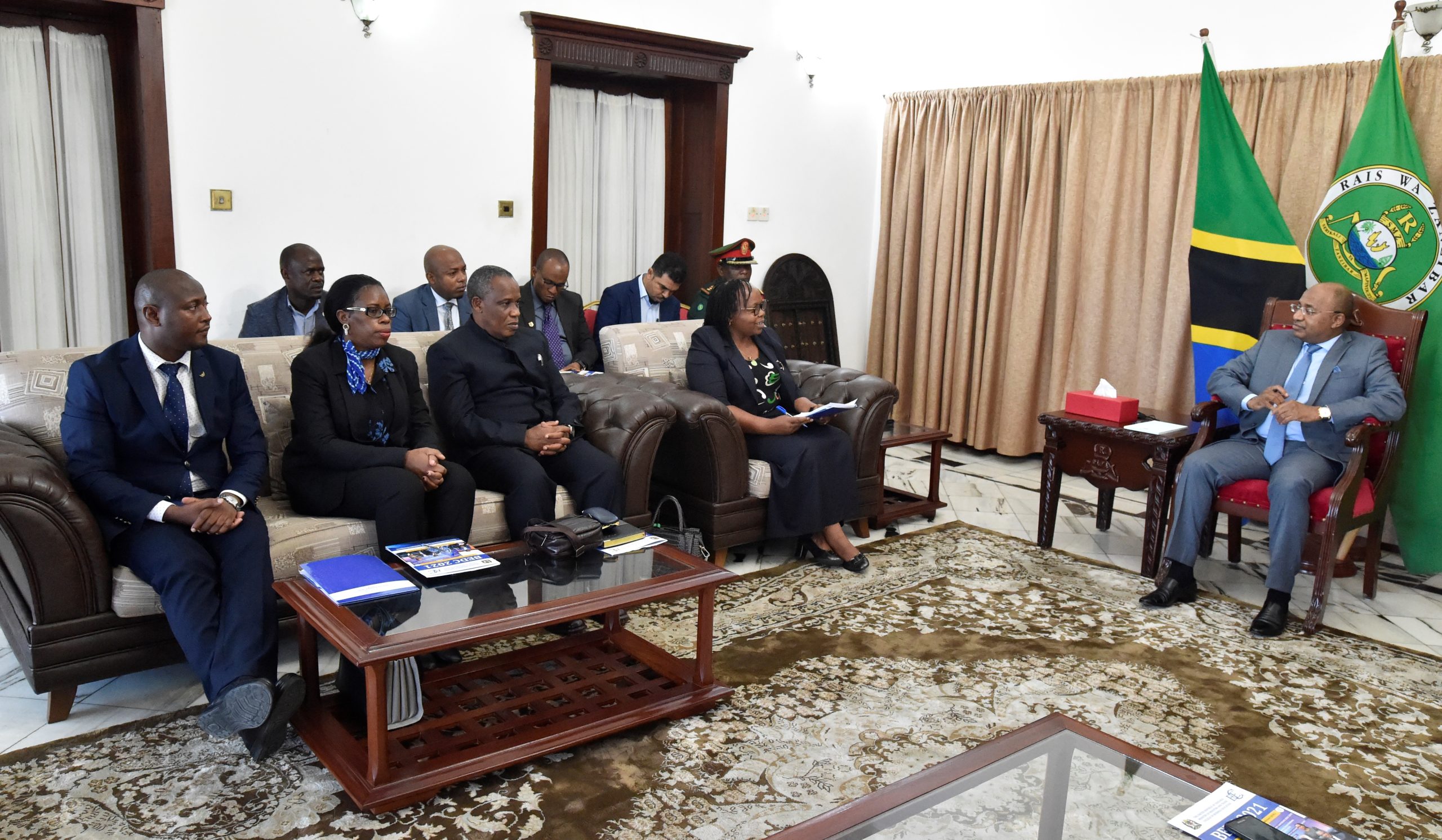 RAIS wa Zanzibar na Mwenyekiti wa Baraza la Mapinduzi Mhe.Dk.Hussein Ali Mwinyi akizungumza na Ujumbe wa Bodi ya Chuo cha Elimu ya Biashara (CBE) ukiongozwa na Mwenyekiti wa Bodi wa Chuo hicho Prof.Wineaster Saria Anderson (kulia kwa Rais) walipofika Ikulu Jijini Zanzibar kwa mazungumzo yaliofanyika katika ukumbi wa Ikulu leo 6-4-2022.(Picha na Ikulu)