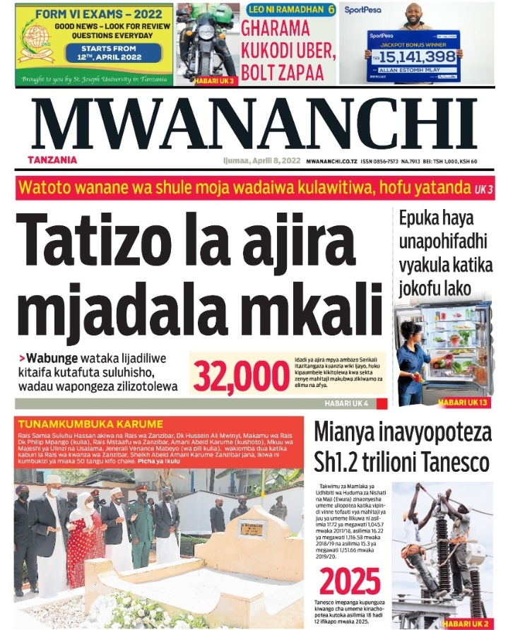 MagazetiPITIA VICHWA VYA HABARI KATIKA MAGAZETI YA LEO APRIL 8,2022 Last updated: 2022/04/08 at 3:25 AM Alex Sonna 4 years ago Share SHARE Alex Sonna April 8, 2022 April 8, 2022 Share this Article Facebook Twitter Email Print Previous Article WAMILIKI WA MALENGO YA KIMKAKATI NA JDU WAOMBWA KUIMARISHA MAHUSIANO Next Article TASAC WATOA ELIMU YA USALAMA KWA WAVUVI WILAYANI MKINGA