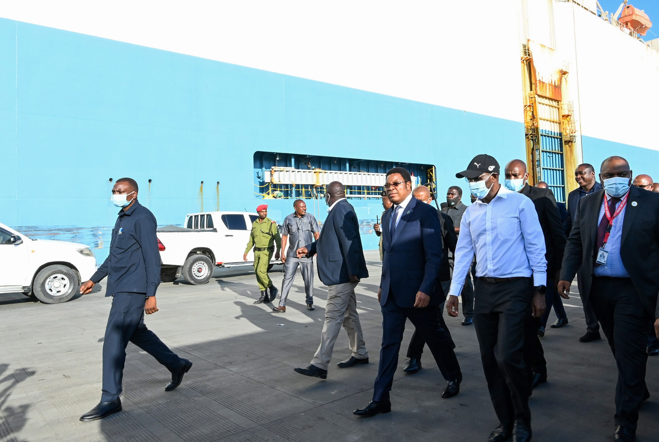 Waziri Mkuu, Kassim Majaliwa akikagua utendaji kazi kwenye Bandari ya Dar es Salaam, baada ya kuzungumza na Viongozi wa Mamlaka ya Bandari Tanzania (TPA), Mamlaka ya Mapato Tanzania(TRA), Shirika la Viwango Tanzania (TBS) na Kampuni ya Kimataifa ya Kuhudumia Makontena Tanzania (TICTS), Aprili 8, 2022. (Picha na Ofisi ya Waziri Mkuu)