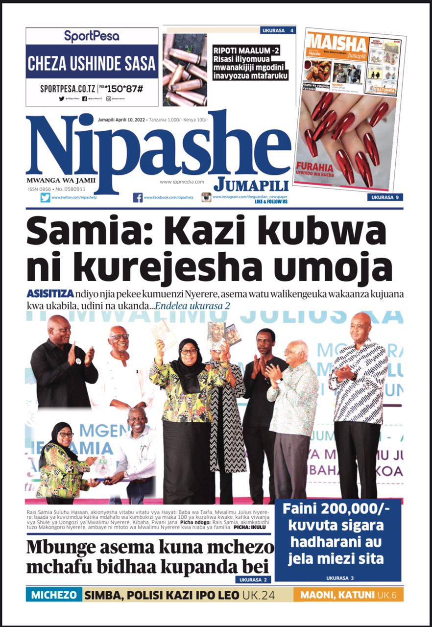 MagazetiPITIA VICHWA VYA HABARI KATIKA MAGAZETI YA LEO APRIL 10,2022 Last updated: 2022/04/10 at 12:44 AM Alex Sonna 4 years ago Share SHARE Alex Sonna April 10, 2022 April 10, 2022 Share this Article Facebook Twitter Email Print Previous Article MRADI WA SITT WAONGEZA UFAULU KWA ASILIMIA 30 Next Article WAZIRI MABULA AONYA WANAOTUMIA HISANI YA RAIS KUVAMIA MAENEO YA HIFADHI
