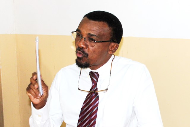 Mkurugenzi Mkuu Tume ya Taifa ya Umwagiliaji Bw, Reymond Mndolwa akifafanua jambo mbele ya watumishi wa Tume ya Taifa ya Umwagiliaji alipokuwa akizungumza nao Makao Makuu jijini Dodoma