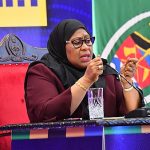 Rais wa Jamhuri ya Muungano wa Tanzania Mheshimiwa Samia Suluhu Hassan akiwa katika picha ya pamoja na Ronald Fenty Baba wa Msanii Maarufu Robyn Rihanna Fenty ambaye alifika katika ukumbi wa Paramount Pictures kwa ajili ya kuangalia Filamu ya Tanzania Royal Tour
