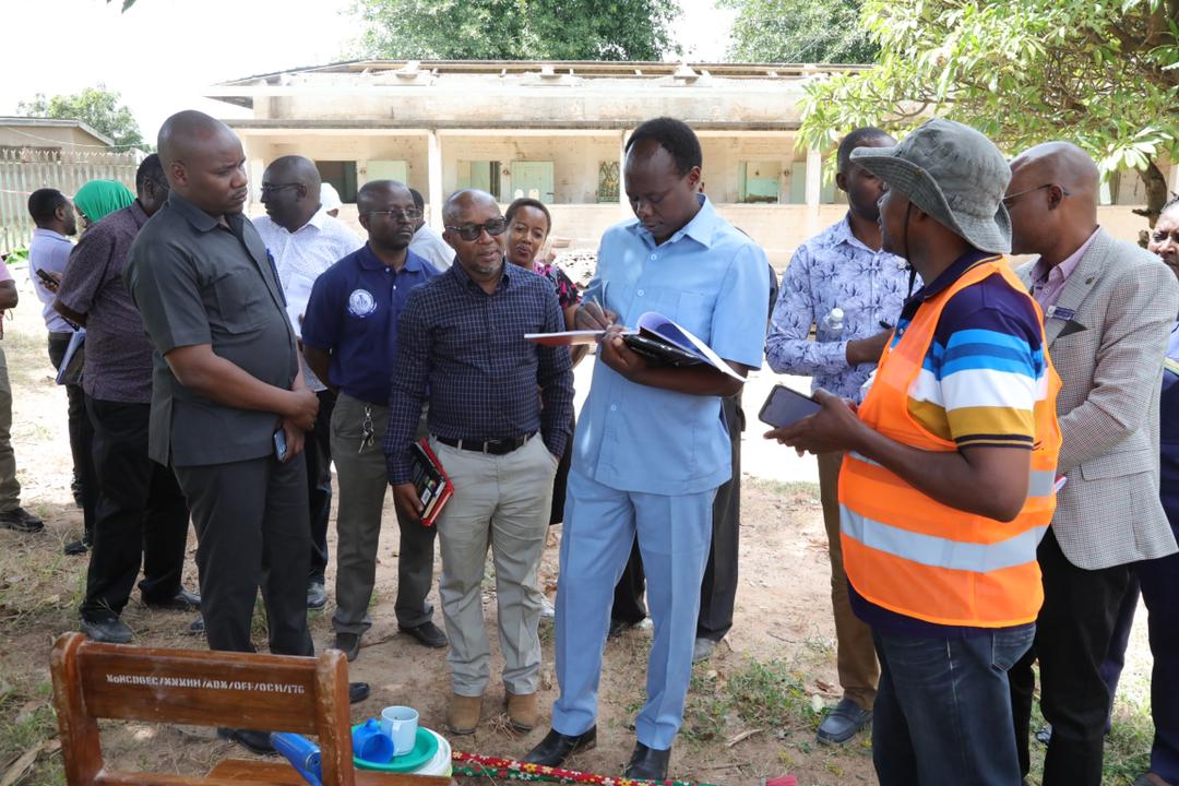 Naibu Waziri wa Afya Dkt. Godwin Mollel (wa kwanza kushoto) pamoja na watendaji wengine wa Wizara ya Afya wakiingia kukagua mradi wa ujenzi wa jengo la wagonjwa wa nje katika Hospitali ya Taifa ya Magonjwa ya Akili Mirembe.