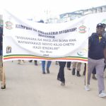 Naibu Katibu Mkuu (Muungano) Ofisi ya Makamu wa Rais Bw. Abdallah Hassan Mitawi na Katibu Mkuu Afisi ya Makamu wa Pili wa Rais Bw. Thabit Idarous Faina pamoja na watendaji wao wakiwa katika ziara ya kukagua ukarabati wa tuta la kuzuia majichumvi kwenye Bonde la mpunga la Ukere Wilaya ya Micheweni Mkoa wa Kusini, Pemba unaotekelezwa kupitia Mradi wa Urejeshaji Ardhi iliyoharibika na kuongeza Usalama wa Chakula (LDFS).