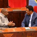 Spika wa Bunge, Mhe. Dkt. Tulia Ackson akimsikiliza Mkurugenzi Mtendaji wa Shirika la Umeme Tanzania (TANESCO), Ndg. Maharage Chande wakati akikagua Mabanda Mbalimbali katika Monyesho ya Majukumu ya Wizara ya Nishati na Taasisi zake katika Viwanja vya Bunge Jijini Dodoma leo Mei 23, 2022, Katikati ni Maafisa kutoka Shirika la Umeme Tanzania.