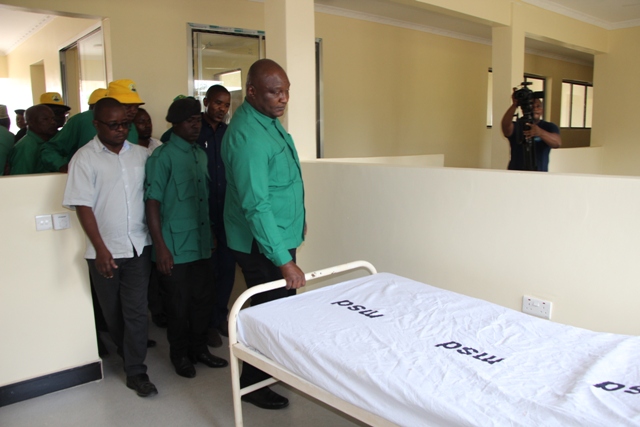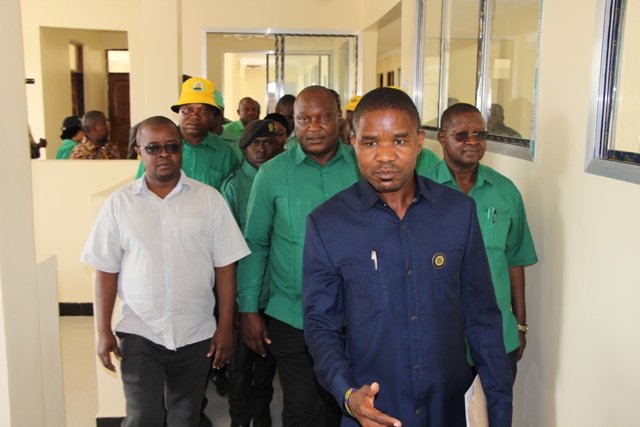Katibu Mkuu wa Chama Cha Mapinduzi CCM Ndg. Daniel Chongolo akikagua Moja vitamda vya kituo Cha afya Cha Isaka wakati alipokagua ujenzi wa kituo hicho ambapo serikali imetoa jumla ya shilingi milioni.