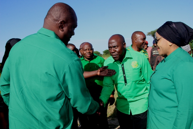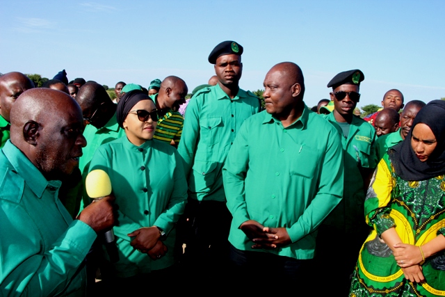 Katibu Mkuu wa Chama Cha Mapinduzi (CCM) Combred Daniel Chongolo akisalimiana na viongozi mbalimblai akiwa kwenye Ziara yake Mkoa wa Simiyu kwa kupokelewa Wilayani Itilima kata ya Nkoma.
