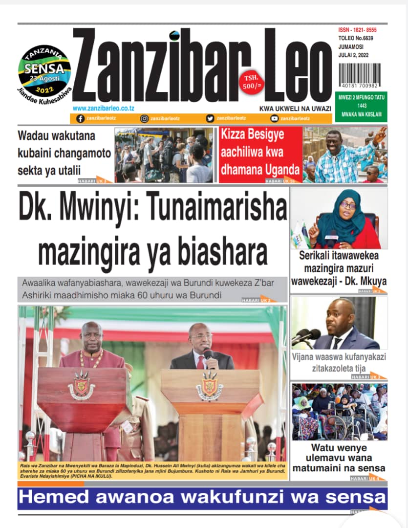 MagazetiPITIA VICHWA VYA HABARI KATIKA MAGAZETI YA LEO JULAI 2,2022 Last updated: 2022/07/02 at 3:40 AM Alex Sonna 4 years ago Share SHARE Alex Sonna July 2, 2022 July 2, 2022 Share this Article Facebook Twitter Email Print Previous Article NAIBU KATIBU MKUU AMON MPANJU AWAKARIBISHA WANANCHI KATIKA BANDA LA TAASISI YA USTAWI WA JAMII Next Article RC – AMOS MAKALLA AIPONGEZA COSTECH KWA KUENDELEA KULEA BUNIFU NA TAFITI ZENYE TIJA NCHINI