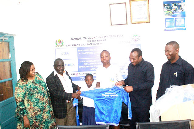 Uwasa) Mhandisi Geofrey Hilly wa tatu kutoka kushoto na Afisa Elimu Msingi Jiji la Tanga Kasim