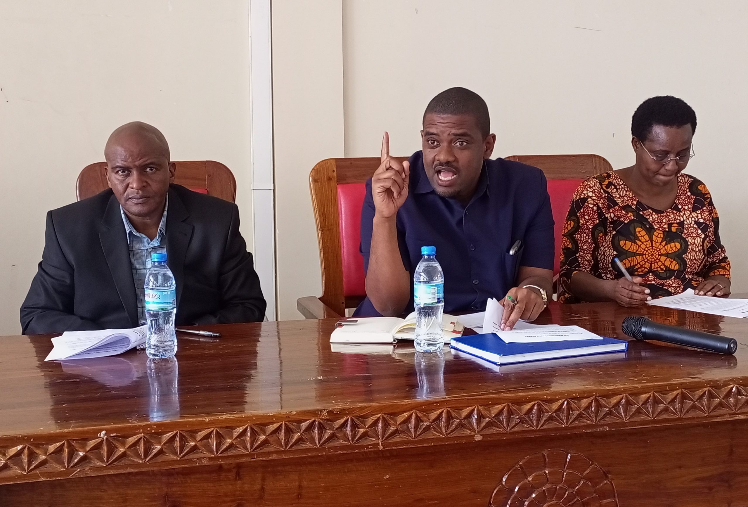Kaimu Mkuu wa Mkoa ambaye ni Mkuu wa Wilaya ya Babati, Mhe. Lazaro Twange akitoa neno la utangulizi kabla ya kumkaribisha Naibu Waziri, Ofisi ya Rais, Menejimenti ya Utumishi wa Umma na Utawala Bora, Mhe. Deogratius Ndejembi kuzungumza na watumishi wa Halmashauri ya Mji Babati wakati wa ziara yake ya kikazi katika halmashauri hiyo iliyolenga kuhimiza uwajibikaji na kutatua changamoto zinazowakabili watumishi.