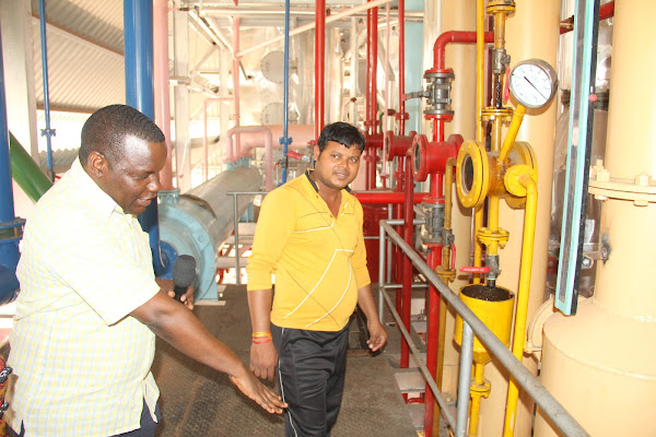 Mkurugenzi wa Kampuni ya Usindikaji Mafuta ya Gilitu Enterprises Ltd ya Mjini Shinyanga, Gilitu Makula akionesha sehemu ya mtambo wa Solvent unaokamua mafuta ya pamba katika kiwanda chake cha mafuta ya pamba na alizeti ‘SANICO’ kilichopo Mjini Shinyanga