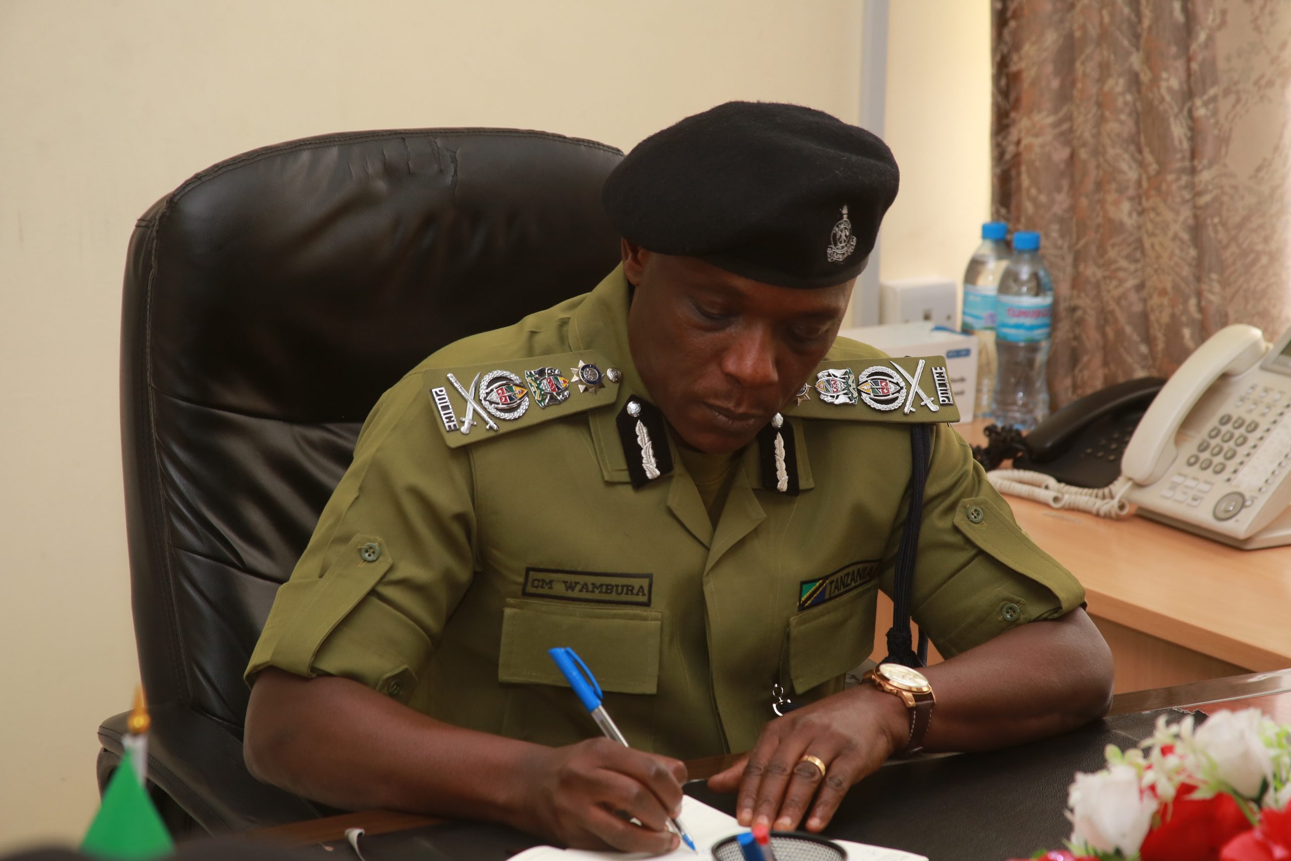 IGP Wambura amesema hayo baada ya kupokelewa Makao Makuu ya Polisi mkoa wa Arusha na kupokelewa na kamanda wa Polisi mkoani humo Justin Masejo ambapo aliwataka askari kuendelea kusimamia amani na kuwachukulia hatua kali wale wote watakaobainika kutaka kuvuruga amani ya nchi.