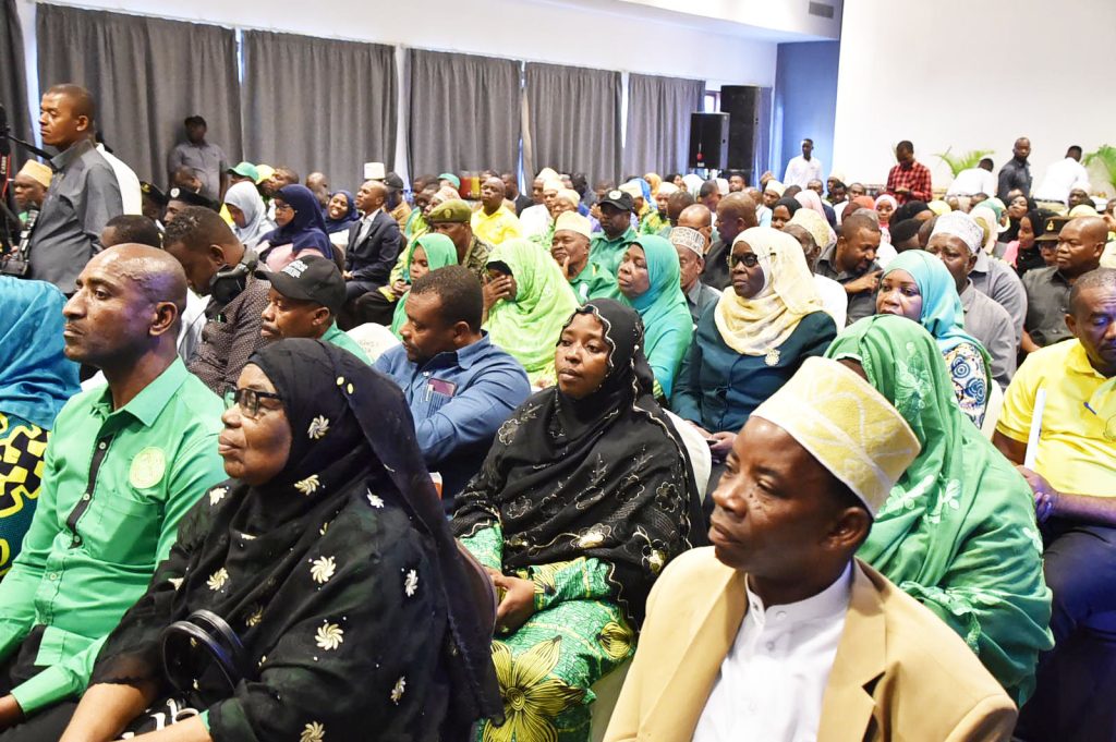 Baadhi ya Viongozi wa Chama na Serikali waliohudhuiria katika mkutano wa majumuisho ya ziara ya Rais wa Zanzibar na Mwenyekiti wa Baraza la Mapinduzi Dk.Hussein Ali Mwinyi ya kugagua miradi ya maendeleo Mkoa wa Kaskazini Unguja huko Ukumbi wa Hoteli ya Melia Zanzibar Pwani mchangani.