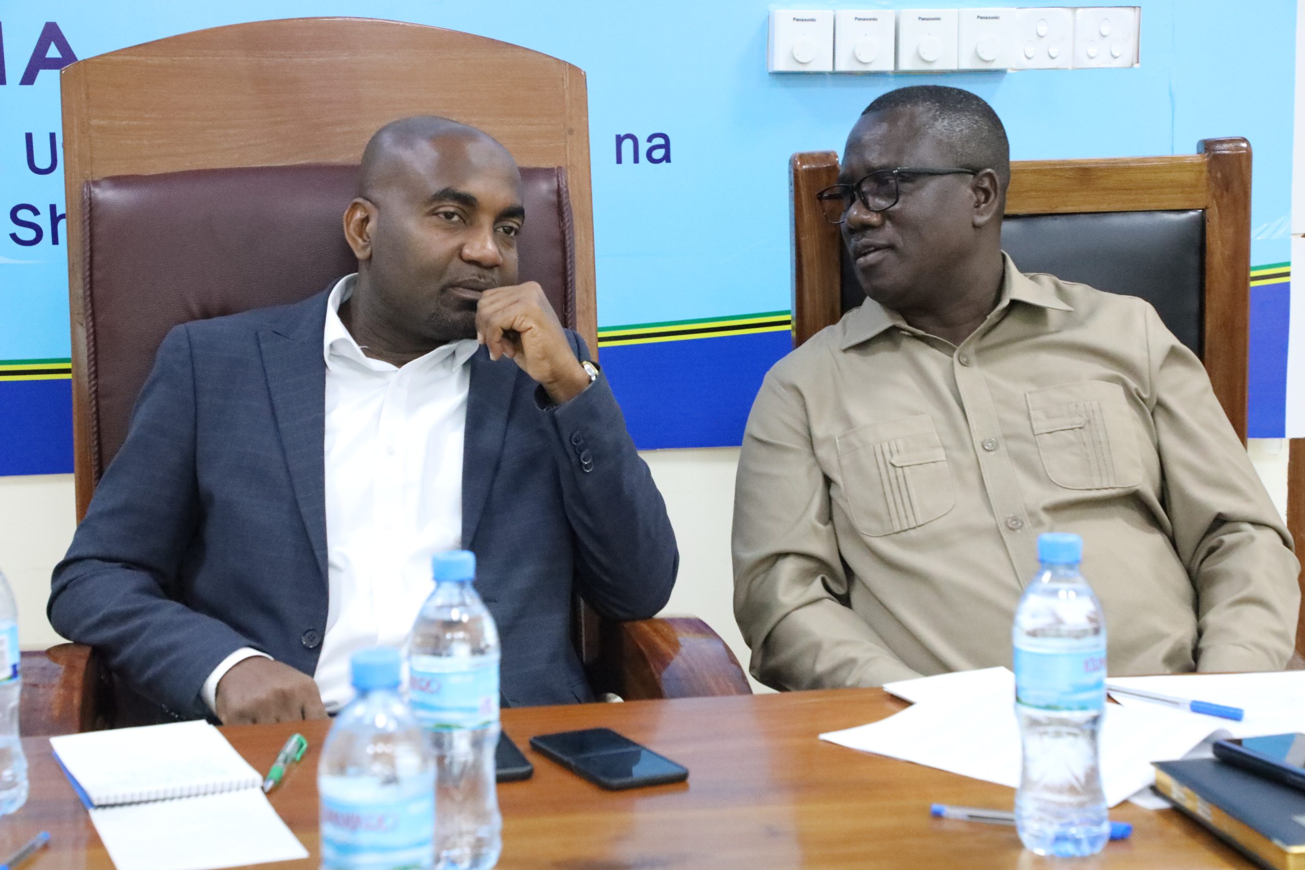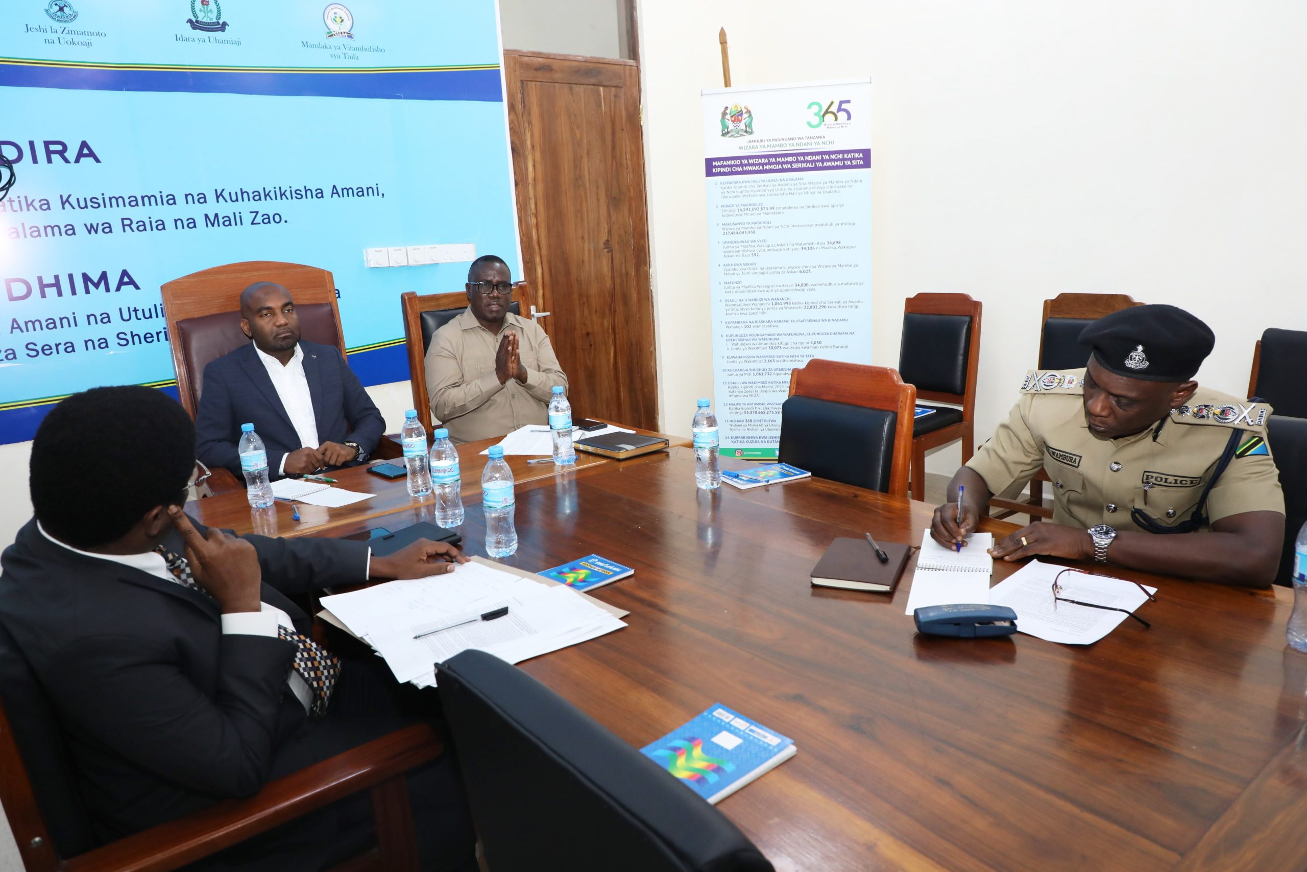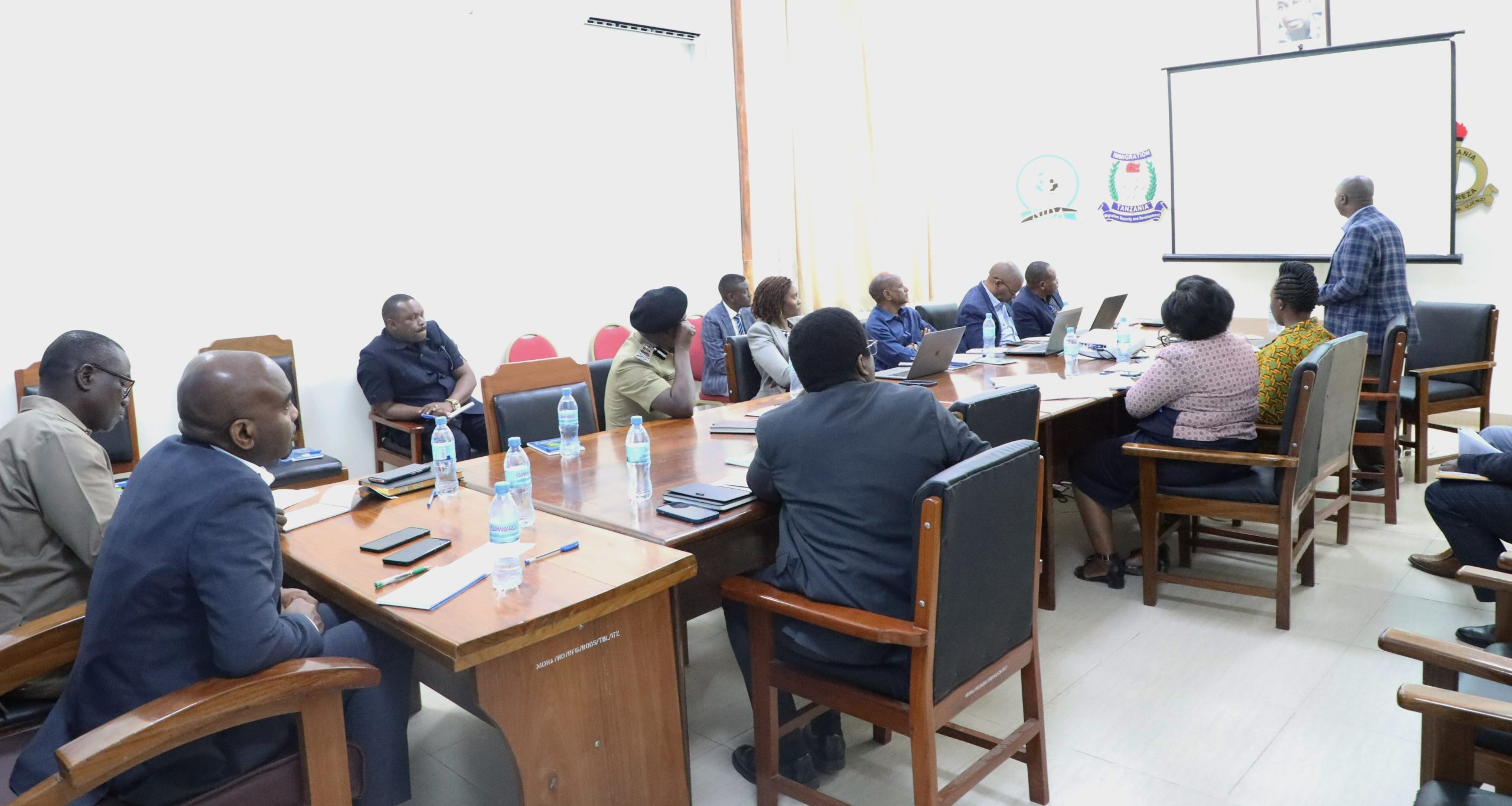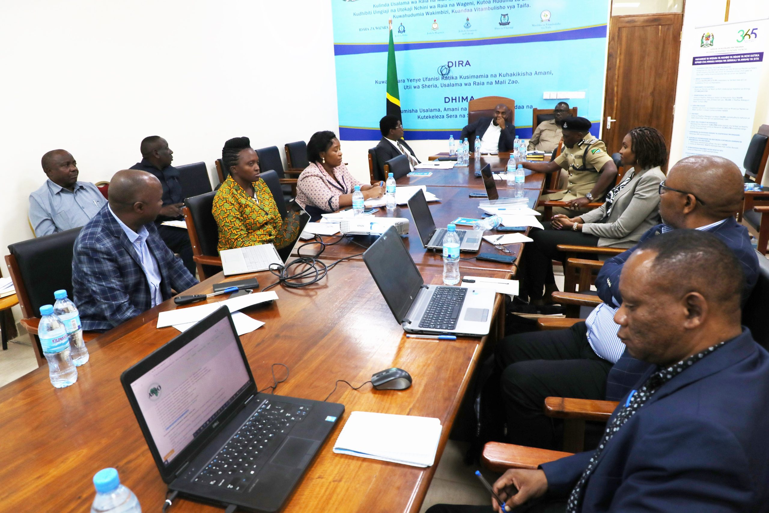 Waziri wa Mambo ya Ndani ya Nchi, Mhandisi Hamad Masauni (wapili kushoto), na Naibu Waziri, Jumanne Sagini pamoja na viongozi mbalimbali wakimsikiliza mwezeshaji alipokuwa anatoa mada kuhusu masuala mbalimbali ya Shirika hilo, katika kikao kilichofanyika, jijini Dodoma leo. Picha na Wizara ya Mambo ya Ndani ya Nchi.