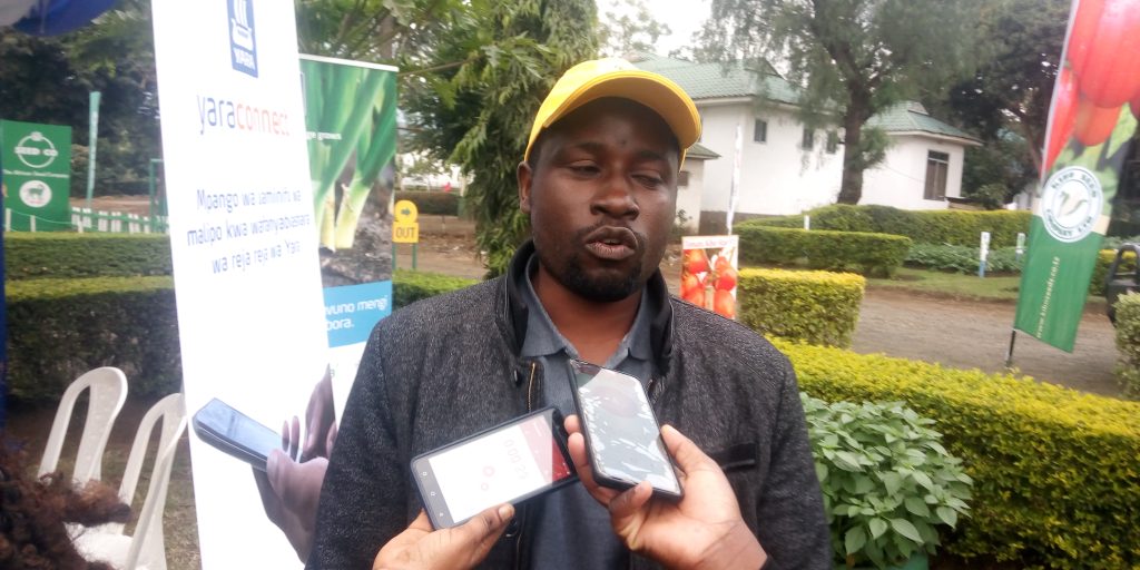 Mtaalamu kutoka kampuni ya uzalishaji mbegu,utafiti na uuzaji wa mbegu ya Kibo Seeds Ltd,Franko Frederick akizungumza katika maonyesho hayo jijini Arusha.