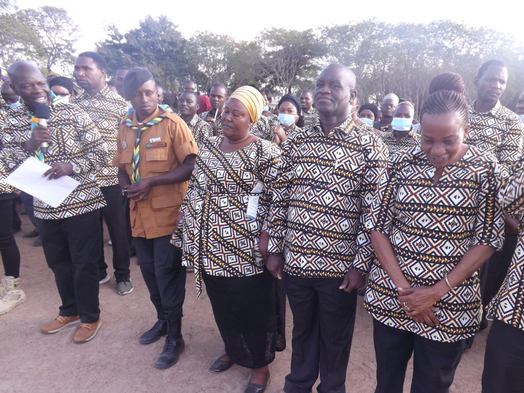 Mkuu wa Wilaya ya Sikonge Mkoani Tabora John Ernest Pallingo akitoa taarifa ya mradi wa ujenzi Kituo cha afya Tutuo kwa Kiongozi wa Mbio za Mwenge wa Uhuru Kitaifa Sahili Nyanzabara hapo