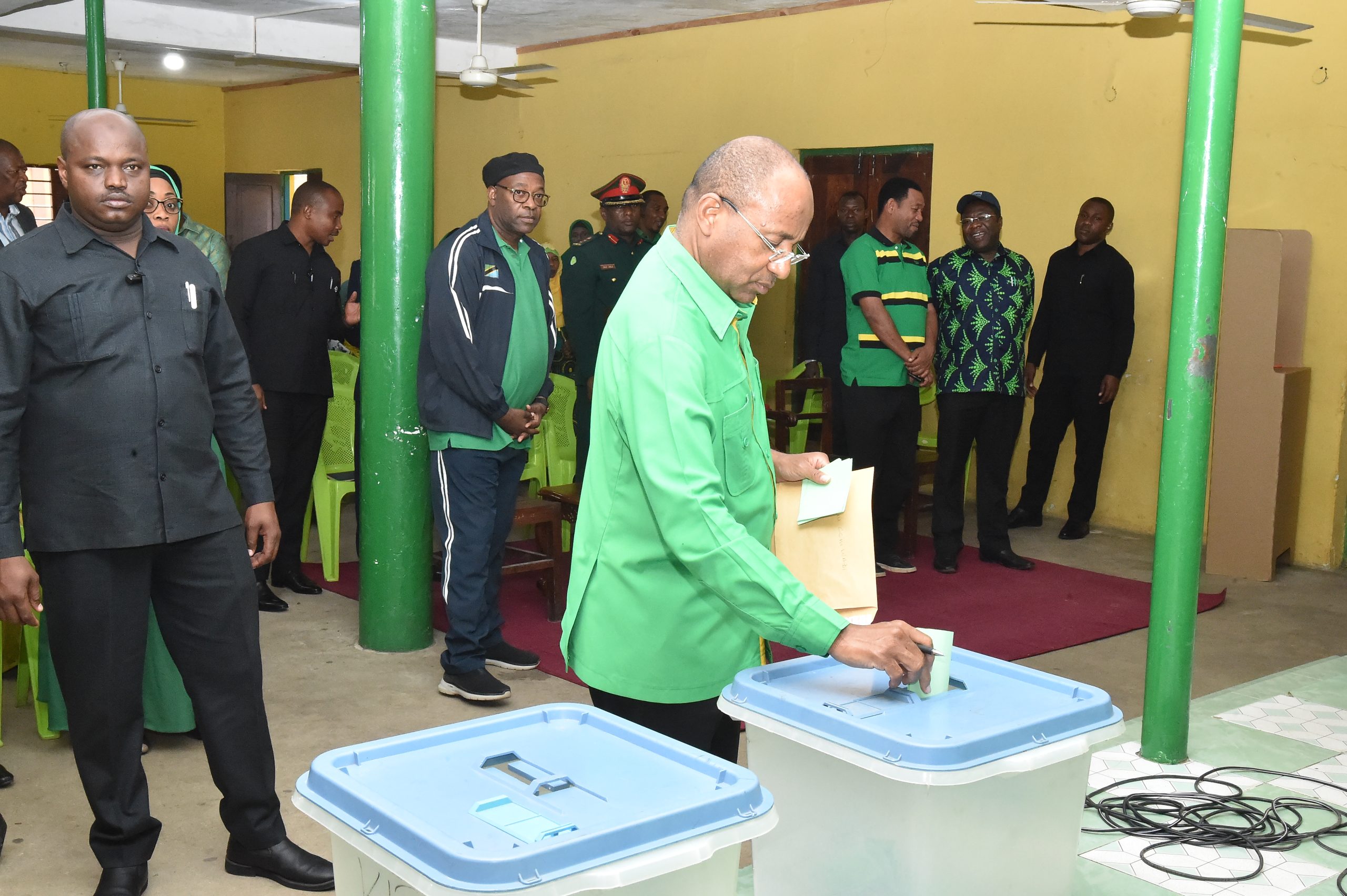 RAIS wa Zanzibar na Mwenyekiti wa Baraza la Mapinduzi ambae pia ni Mjumbe wa Kamati Kuu ya Halmashauri Kuu ya CCM Taifa Mhe.Dk. Hussein Ali Mwinyi akipiga kura kumchagua Mwenyekiti wa Wadi ya Migombani Jimbo la Mpendae Zanzibar, wakati wa Mkutano Mkuu wa Wadi ya Migombani uliofanyika katika Tawi la CCM Kilimani Unguja
