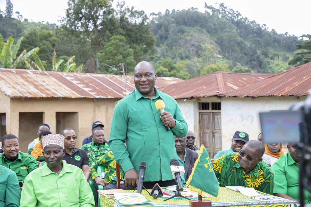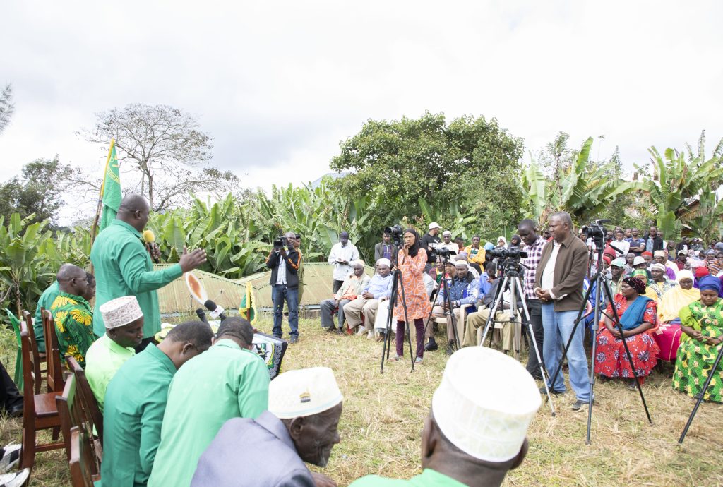 Katibu Mkuu wa Chama Cha Mapinduzi Ndugu Daniel Chongolo akihutubia wakazi wa Kijiji cha Vuchama Ngofi kata ya Mwaniko mara baada ya kukagua maendeleo ya m,radi wa ujenzi wa barabara ya Mwanga-Kikweni Vuchama yenye urefu wa kilomita 28.98, Mwanga mkoani Kilimanjaro.