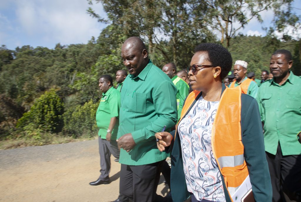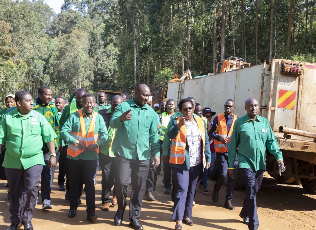 Katibu Mkuu wa Chama Cha Mapinduzi Ndugu Daniel Chongolo akipata maelezo kutoka Meneja wa TANROADS mkoa wa Kilimanjaro wakati wa kukagua maendeleo ya m,radi wa ujenzi wa barabara ya Mwanga-Kikweni Vuchama yenye urefu wa kilomita 28.98, Mwanga mkoani Kilimanjaro.