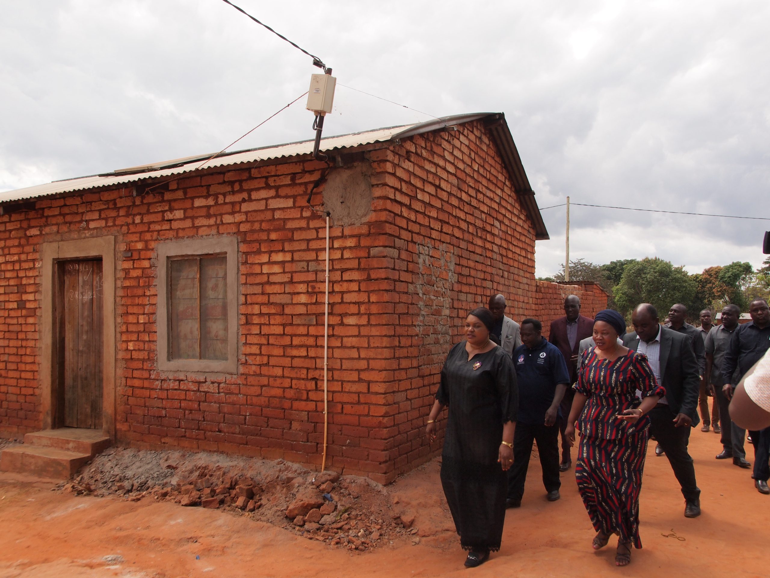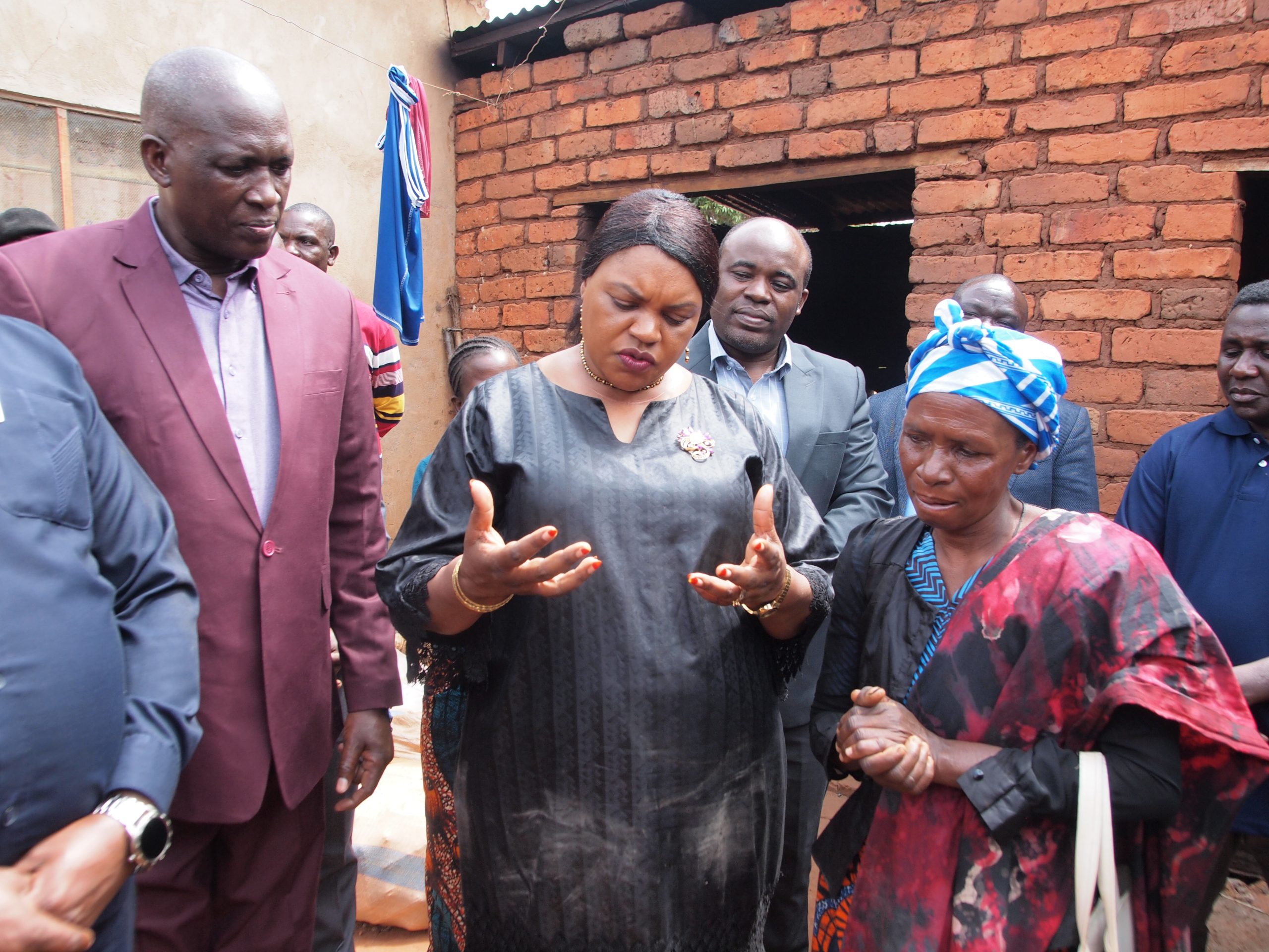 Waziri wa nchi ofisi ya Rais menejimenti ya utumishi wa umma na utawala bora Jenista Mhagama,akikagua nyumba ya mkazi wa kijiji cha Mtyangimbole Halmashauri ya wilaya Madaba Akwilina Mhagama ambaye ni miongoni mwa wanufaika wa mpango wa kunusuru kaya maskini