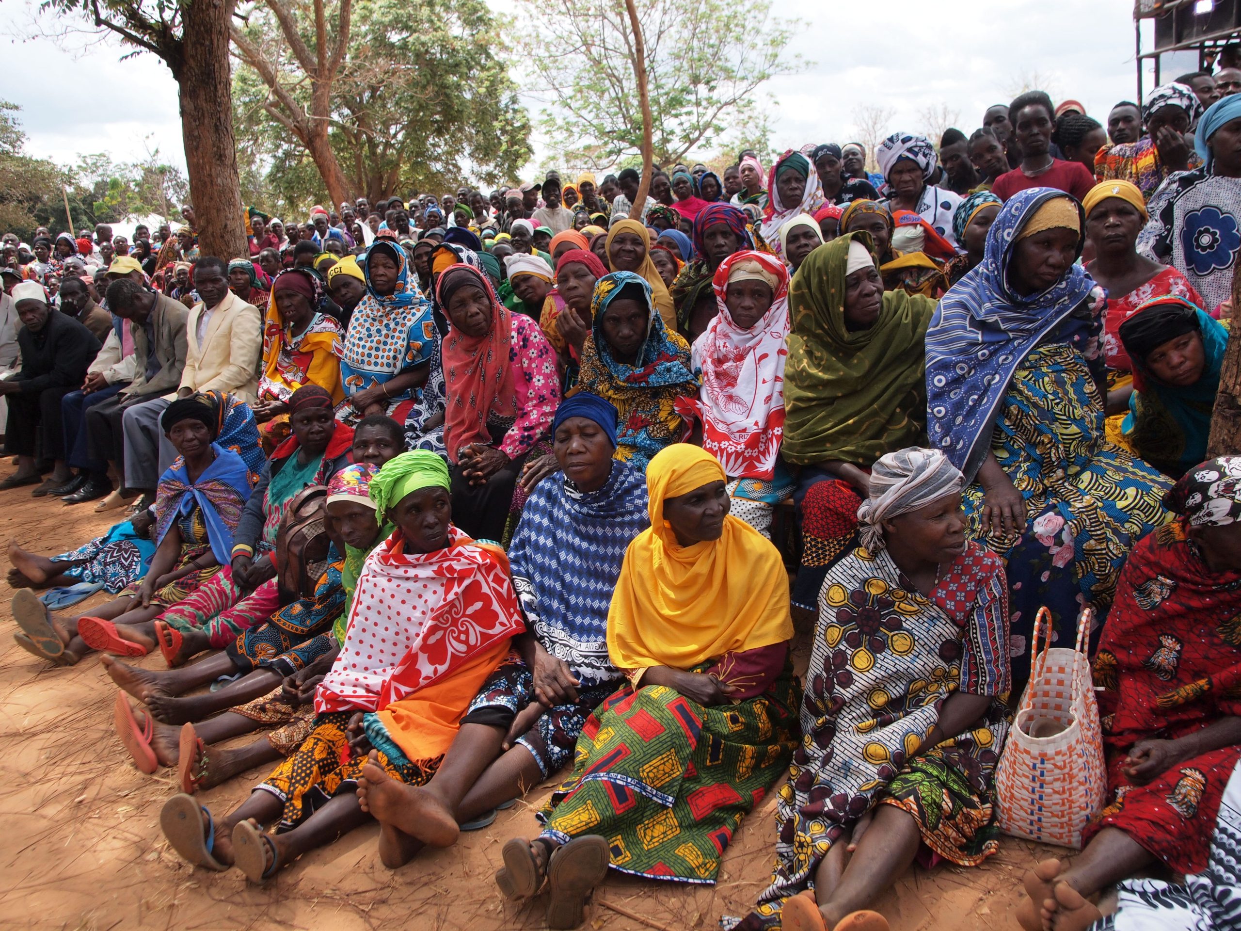 Baadhi ya wanufaika wa mpango wa kunusuru kaya maskini katika kijiji cha Mtyangimbole Halmashauri ya wilaya Madaba mkoani Ruvuma,wakimsikiliza Waziri wa nchi ofisi ya Rais menejimenti ya utumishi wa umma na utawala bora Jenista Mhagama(hayupo pichani) wakati Waziri Mhagama alipowatembelea na kuzungumza na wanufaika hao.