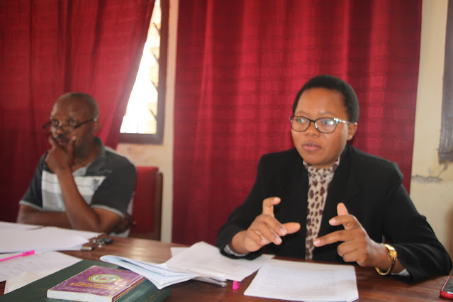 Mwenyekiti wa Baraza la Ardhi Wilaya ya Singida, Bahati Colex (kulia) akizungumza katika semina ya wenyeviti wa mabaraza ya Kata wa Manispaa ya Singida iliyohusu mabadiliko ya sheria ya mahakama za utatuzi wa migogoro ya ardhi iliyofanyika jana Septemba 3, 2022 ukumbi mdogo wa baraza hilo mjini hapa. Kushoto ni Mwanasheria wa Manispaa ya Singida, Burton Mahenge ambaye alikuwa mgeni rasmi na mmoja wa wawezeshaji wa semina hiyo.